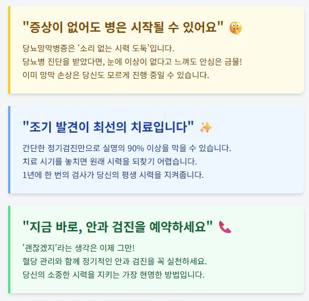 당뇨망막병증은 예방이 가장 중요하며, 이미 발생했다면 꾸준한 관리가 필수적입니다.