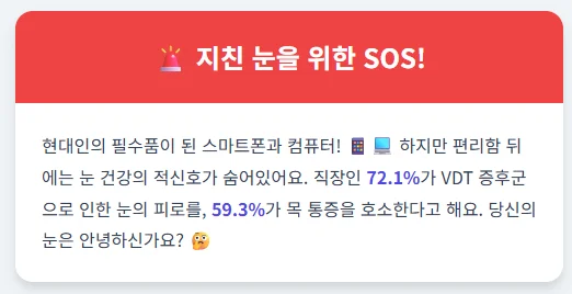 지친 눈을 위한 SOS! 스마트폰과 컴퓨터가 당신의 눈을 위협하고 있습니다.