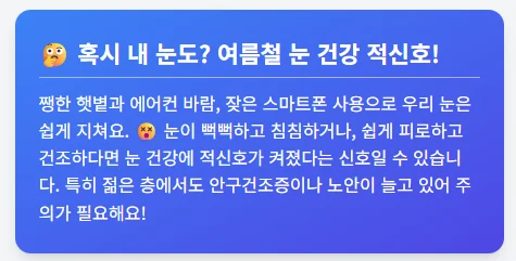 "선생님, 요즘 들어 눈이 너무 뻑뻑하고 침침해요. 스마트폰 때문인지 아니면 더워서 그런 건지…."